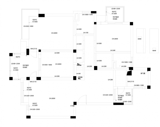 2.南面小孩房和主臥房門口的位置有些浪費。