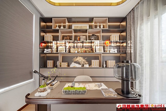 圖4.亮點:書房從陳列到布局,從色調(diào)到材質(zhì),都表現(xiàn)出雅致的特征,窗簾選用通透感強的淺色紗簾既能遮光又能讓將陽光折射變得溫婉柔和。